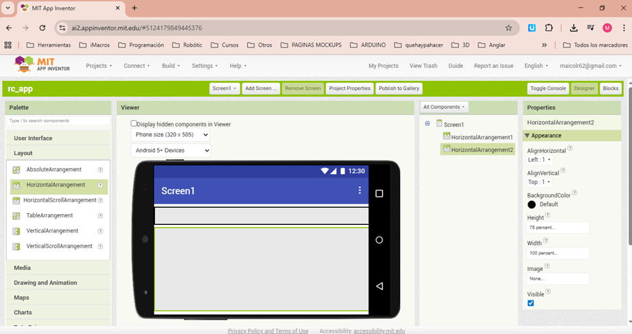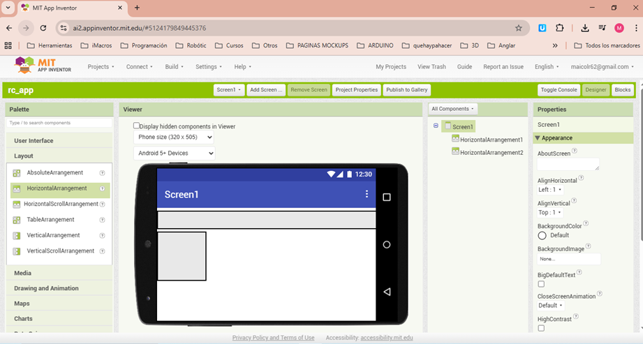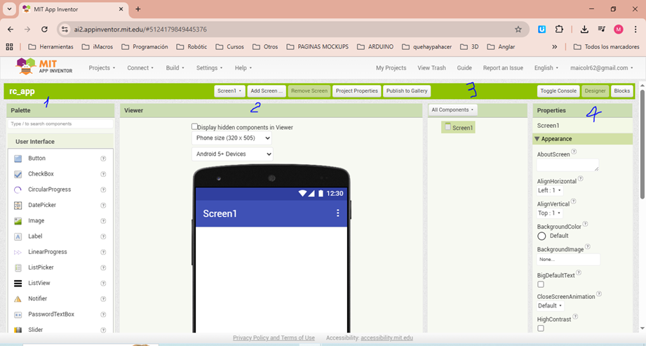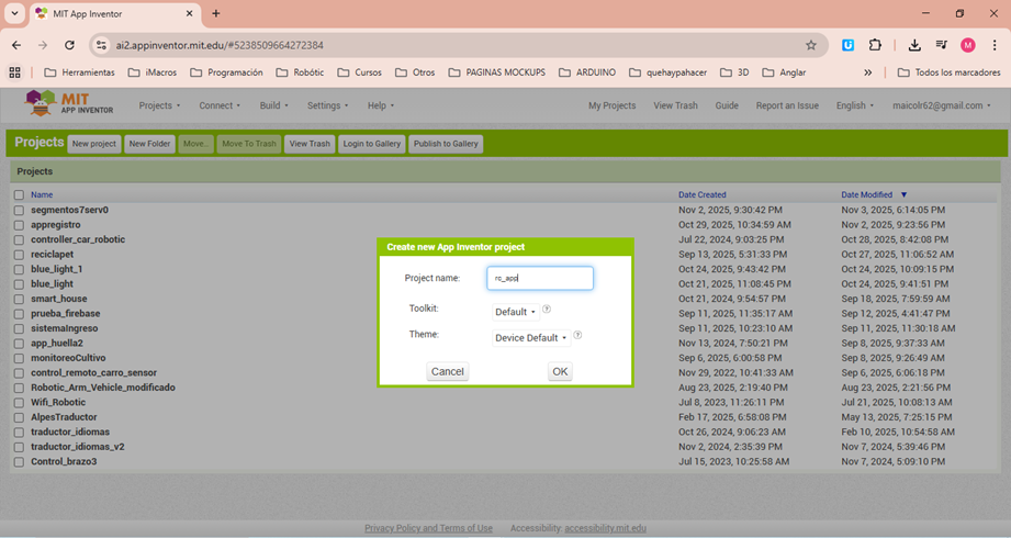 Bien iniciemos, como primer paso ingresaremos a la herramienta app inventor y crearemos un proyecto que por defecto le daremos el nombre de “rc_app”.