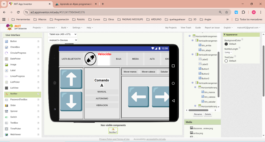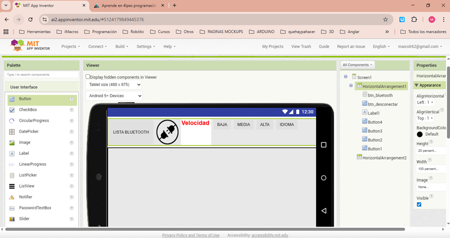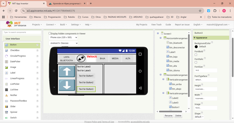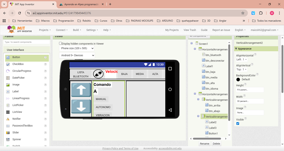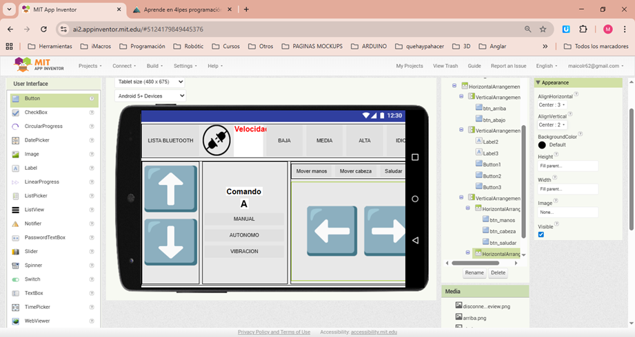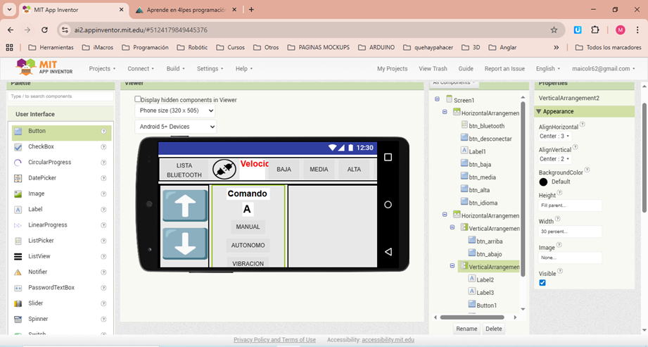 En este tutorial te guiare paso a paso en el diseño y desarrollo de una aplicación móvil que permita comunicación bluetooth con tarjetas Arduino y esp32, más específico una app para el control de prototipos robóticos tipo vehículos.