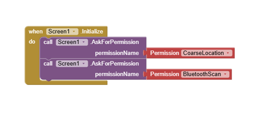 Ahora vamos a definir que va a pasar una vez se haya seleccionado un dispositivo, para ello vamos a copia el siguiente fragmento de bloques: