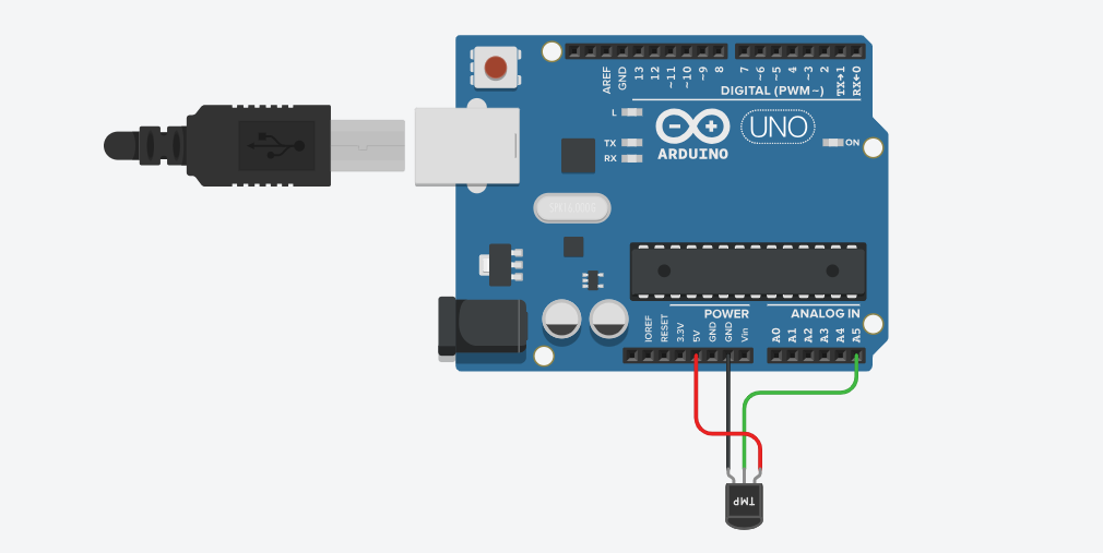 Dicho esto, haremos la conexión del sensor y el arduino uno tal y como se muestra en la siguiente imagene: