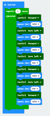Ahora lo que haremos será que el robot haga el mismo recorrido repitiéndolo tres (3) veces.