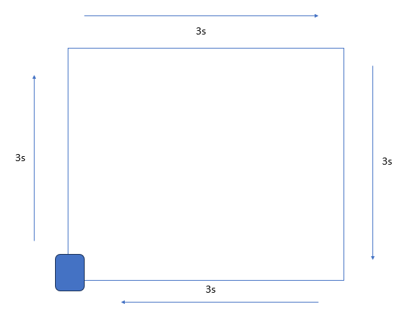 Lo que haremos será básicamente crear un programa donde el robot realice el recorrido de un cuadrado, cada movimiento o lado se representara en tiempo es decir que el robot deberá avanzar durante 3 segundo luego deberá girar a la derecha avanzar nuevamente durante 3 segundos y repetir dicho proceso de manera que termine en el punto que inicio.